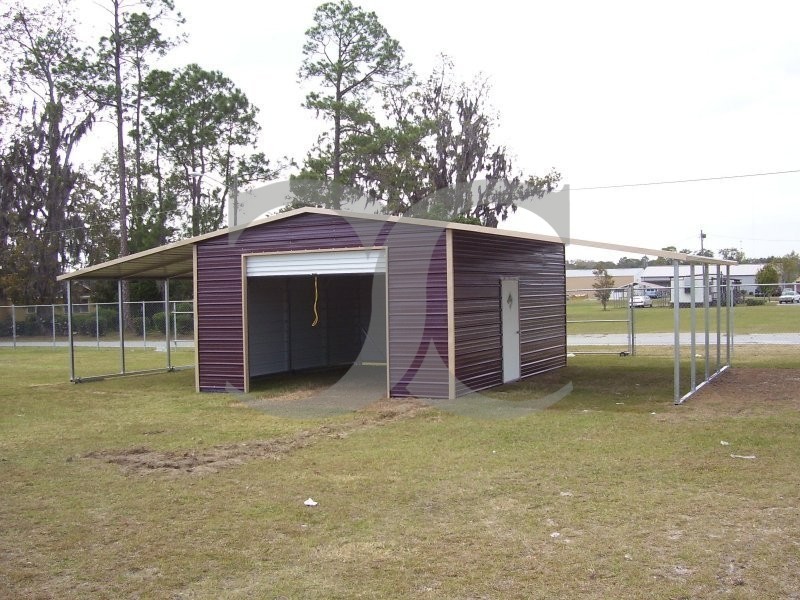 44' Wide x 21' Long x 10' High Enclosed Metal Barn with Lean-tos and Boxed Eave Roof System (Better).